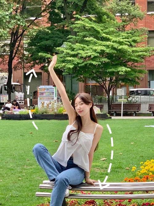 2. 单腿弯曲:这个姿势给人一种随性的感觉。你可以将一条腿弯曲,放在另一条腿上,双手自然放在膝盖上,这样的照片看起来既自然又随性。